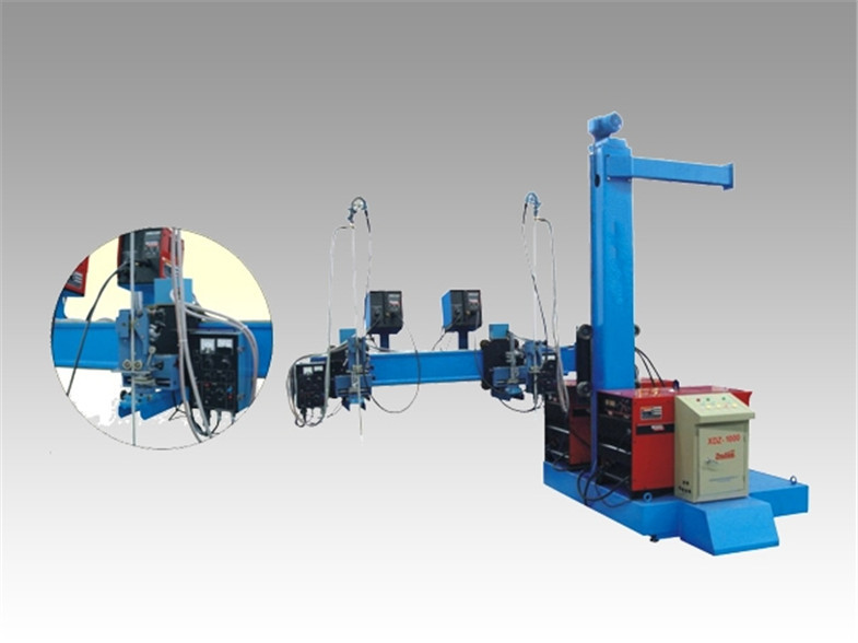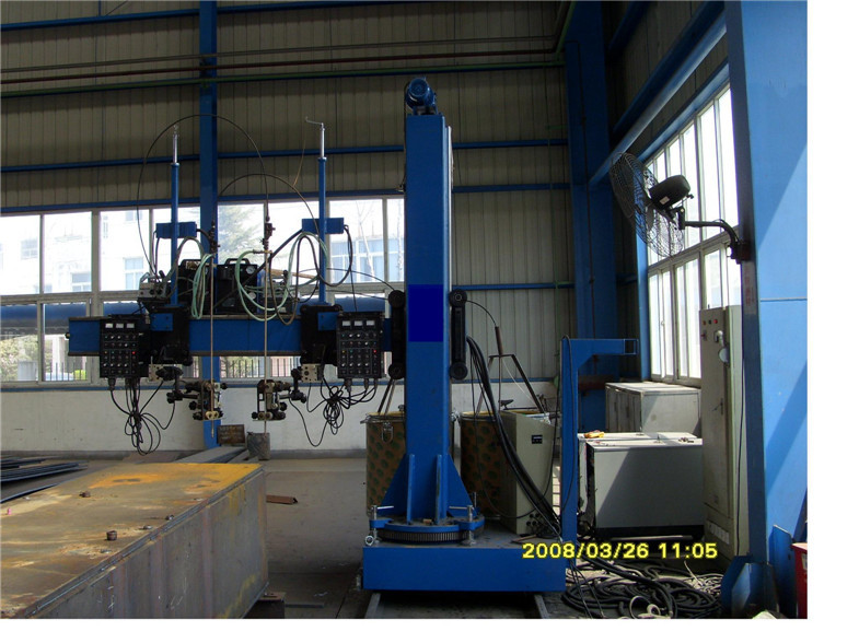 Für festeres Schweißen von internen Leitblechen zum Hohlträger, gibt es den Raum, der vor Schweißen zwischen Leitblechen und Hohlträger während des Zusammenbaus von Leitblechen gelassen wird. Ziehen Sie zuerst das Hohlträgerposten CO2-zurückschweißen hoch, um von dieser Maschine zu gestalten, dann hing die Galvanoschlackenschweißensenergie am Boom durchführt vertikales Galvanoschlackenschweißen am vorgeschnittenen Loch des Werkstückes. Der Spalteboomrahmen kann entlang lengthways Richtung des Werkstückes nach Belieben reisen.