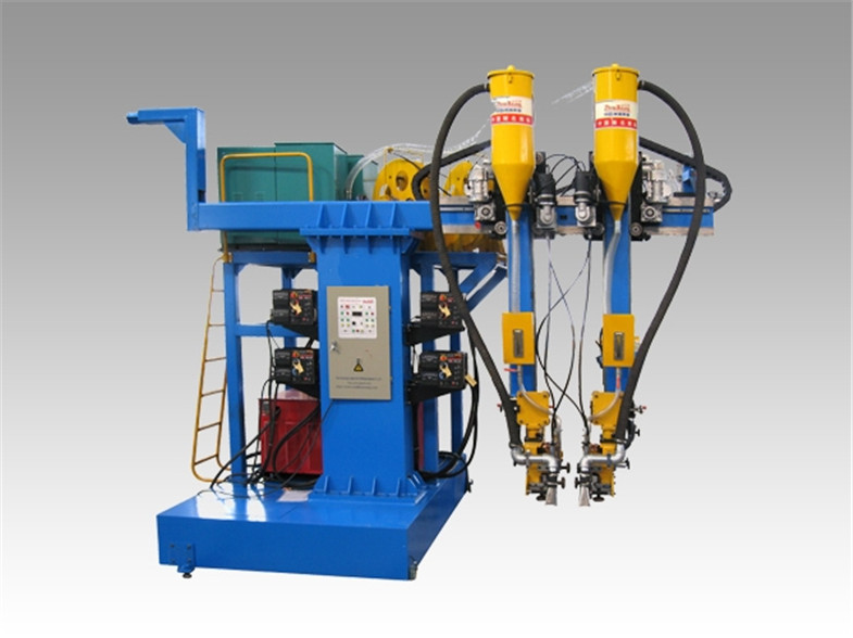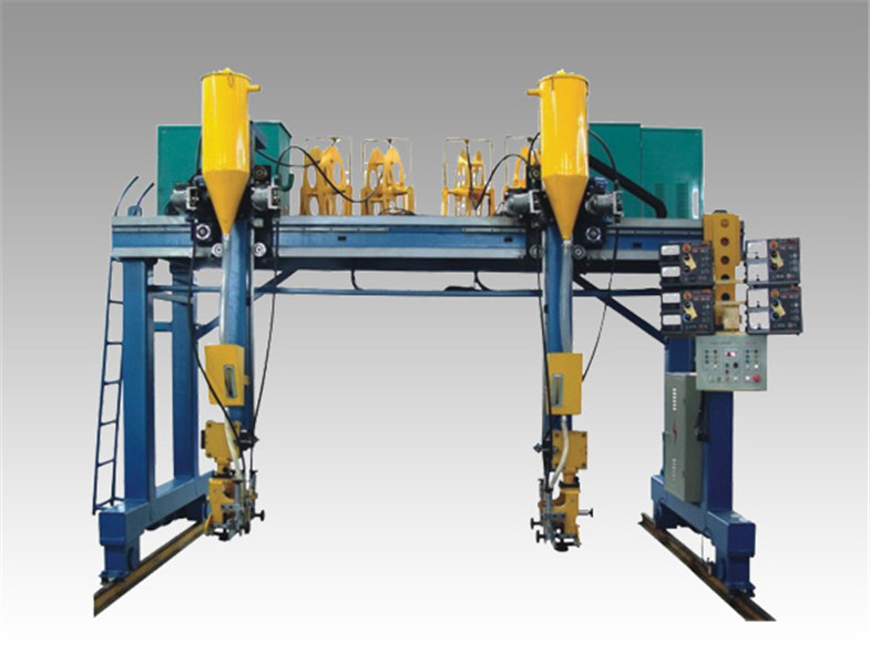 Diese Maschine wird für Hohlträger automatisches SÄGE-Schweißen benutzt. Sie kann für H-Strahlnkehlnahtschweißung auch unten verwendet werden in der Hand, nachdem man das leitende Gestell des Bogens geändert hat. Nach dem Abschluss des Hohlträgers ESW (Galvanoschlackenschweißen), übertragen Sie den Hohlträger auf eine Seite SÄGE-Schweißgerät. Nach dem Abschluss von einer Naht und übertragen Sie dann den Strahl auf ein anderes SÄGE-Schweißgerät. Der schweißende Arm mit Kopf des versenkten Elektroschweißens kann sich in die vertikalen und horizontalen Richtungen bewegen, zum des schweißenden Kopfes herzustellen, die schweißende Naht anzustreben. Auf schweißendem Arm gibt es das pneumatische mechanische Bogen-leitende Gerät, zum der Verfolgung zu verwirklichen. Und die Maschine kann das automatische SÄGE-Schweißen tun. Es gibt Fluss Fütterung und Wiederaufnahmegerät für diese Maschine.